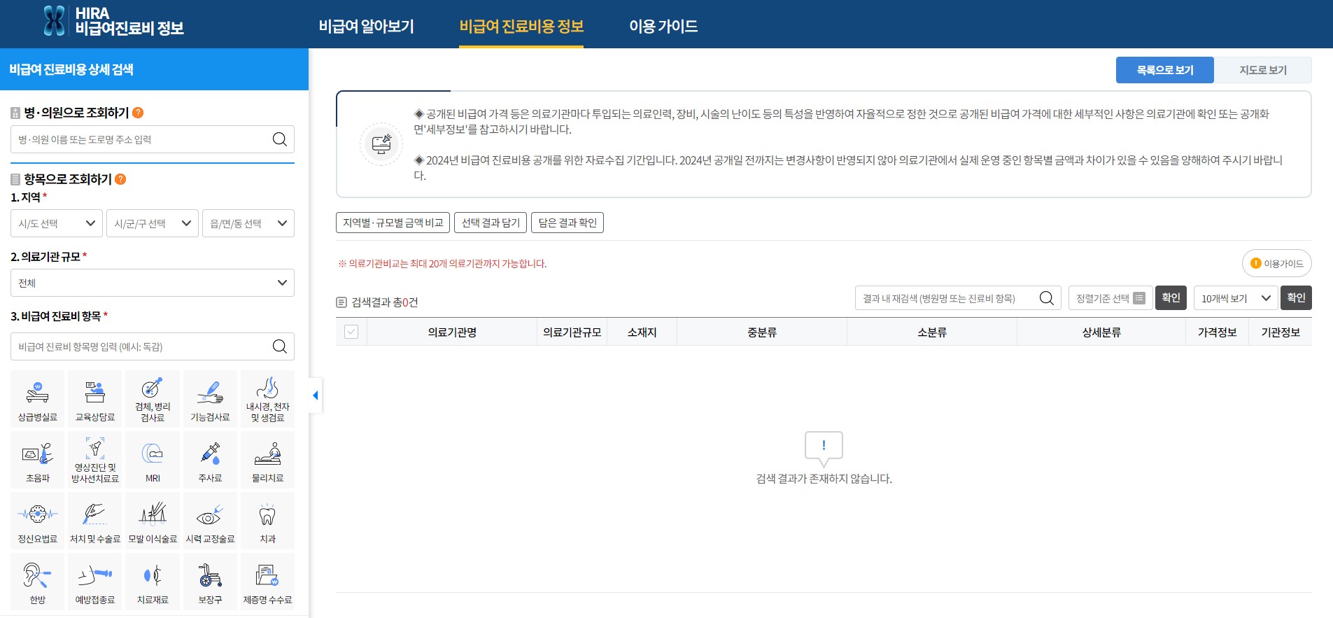 3. 건강보험심사평가원을 통해 지역별로 찾기.