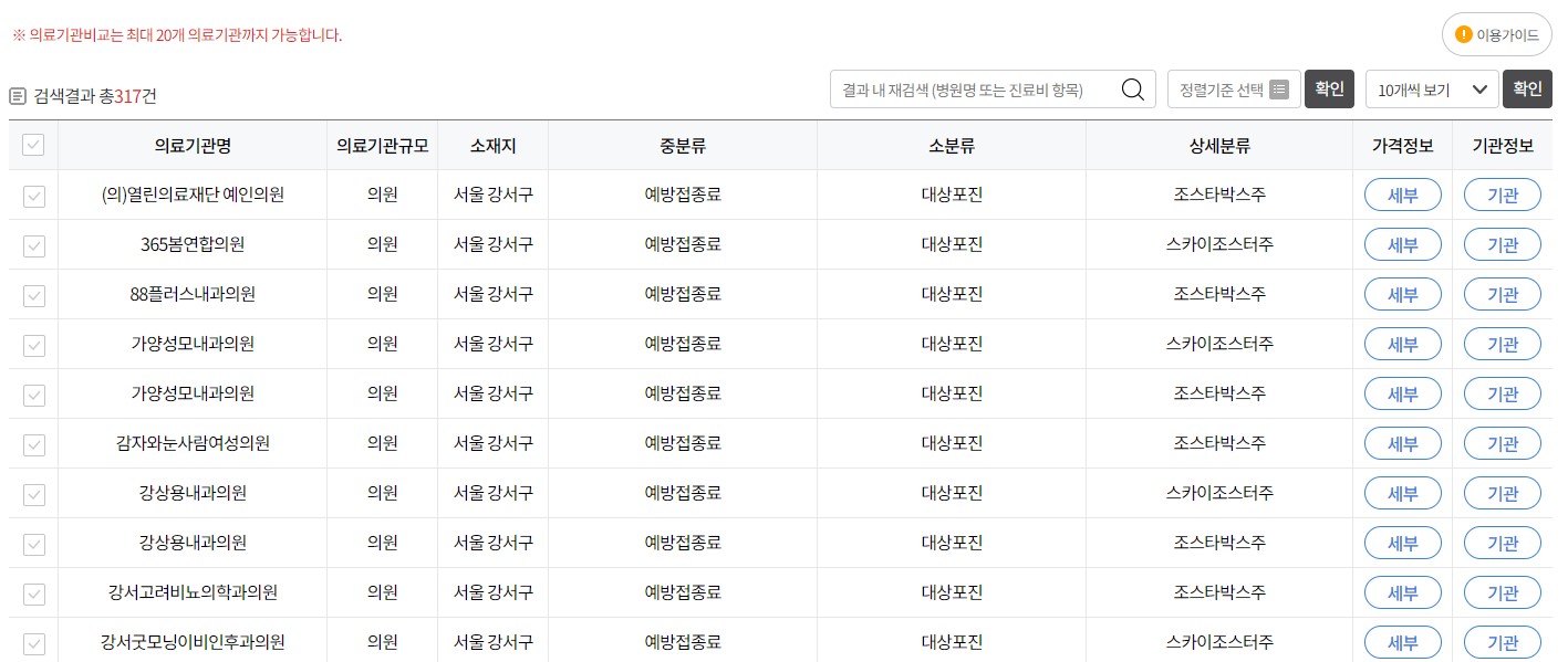 예방접종 백신인 조스타박스 스카이조스터 싱그릭스 모두 가격 차이가 나지만, 이 또한 병원 별로 차이가 크다. 예를 들어 조스타박스의 경우 같은 지역 내 병원임에도 불구하고 어디는 11만원, 어디는 18만원을 받는다.