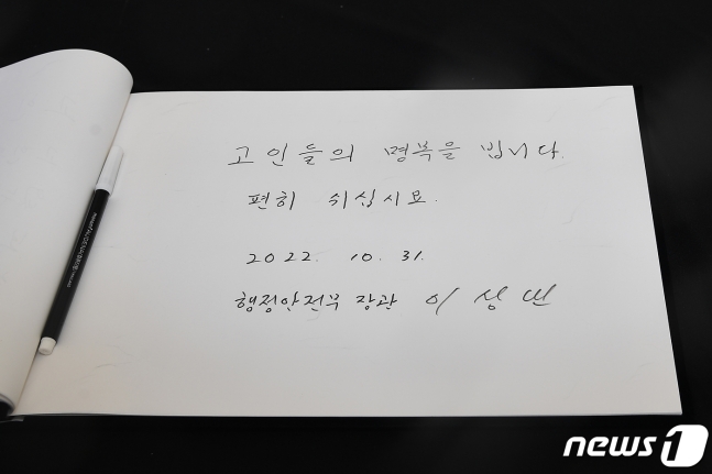 이태원 참사를 보는 이상민의 시각에 대해 어느 이는 "뭐가 문제지"라고 말할 수 있다. 그런데 그건 일반 국민들이 다양하게 생각하는 중에 나올 수 있는 말이지, 행정을 책임지는 장관이 할 이야기는 아니다. 그리고 그 정점에는 합동분향소 방명록에 남긴 말이다.