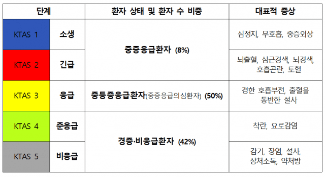 그런데 만약 중증 경증을 판단하지 못한 상황에서 권역·지역응급의료센터를 방문했는데 경증이라 판별되면 무조건 본인부담금이 90%로 오르는 것일까. 아니다. 권역응급의료센터에서 의사 진찰 전 KTAS로 환자 중증도를 분류하게 돼 있다. 여기서 경증으로 분류된 뒤 의사 진찰을 받지 않으면 따로 돈을 내지 않아도 된다. 그런데 경증·비응급환자로 분류된 후 전원하지 않고 권역응급의료센터에서 진료를 받으면 이 경우 본인부담금 90%가 적용된다.
